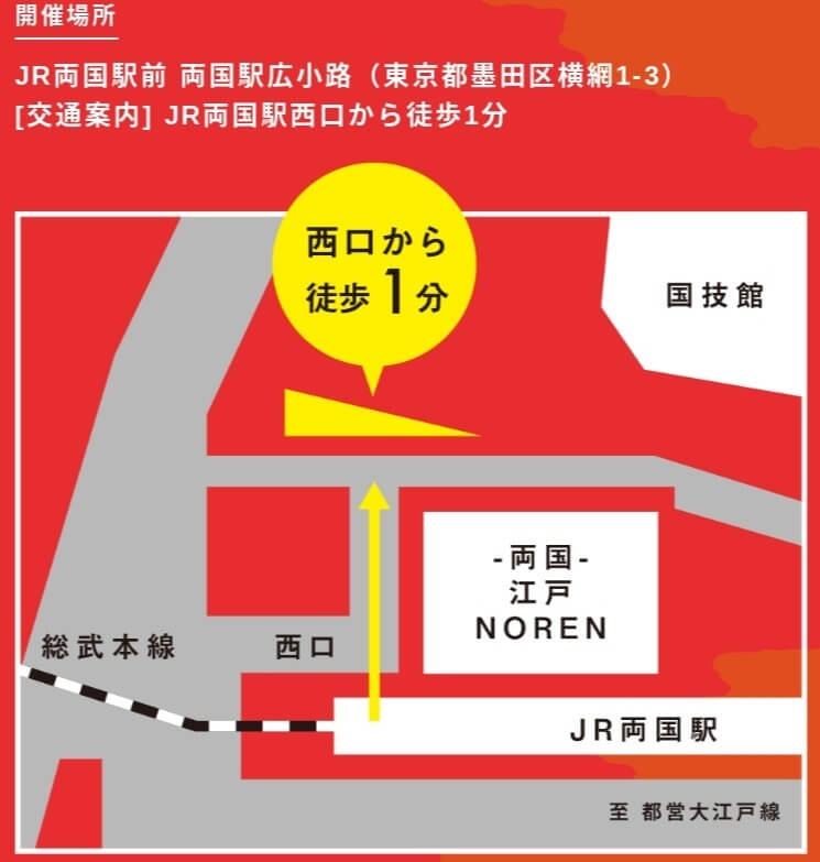 アクセス方法ですが、JR両国駅の目の前です。