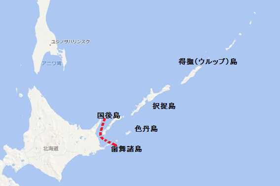 日本が主張する「北方領土(北方四島とも呼ぶ)」は、国際的な地図上ではクリル諸島(千島列島)の南端に位置する4つの島々のことを指します。